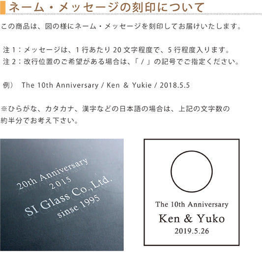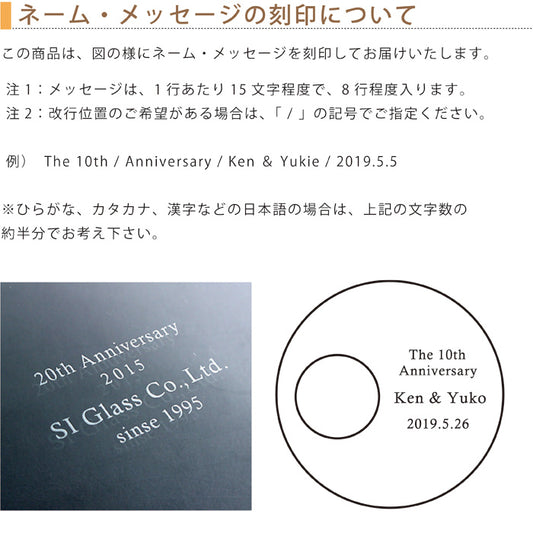 周年記念・各種表彰など法人ギフトから、結婚祝い・定年記念などパーソナルギフトまで、自由にメッセージを刻める人気アイテムです。
