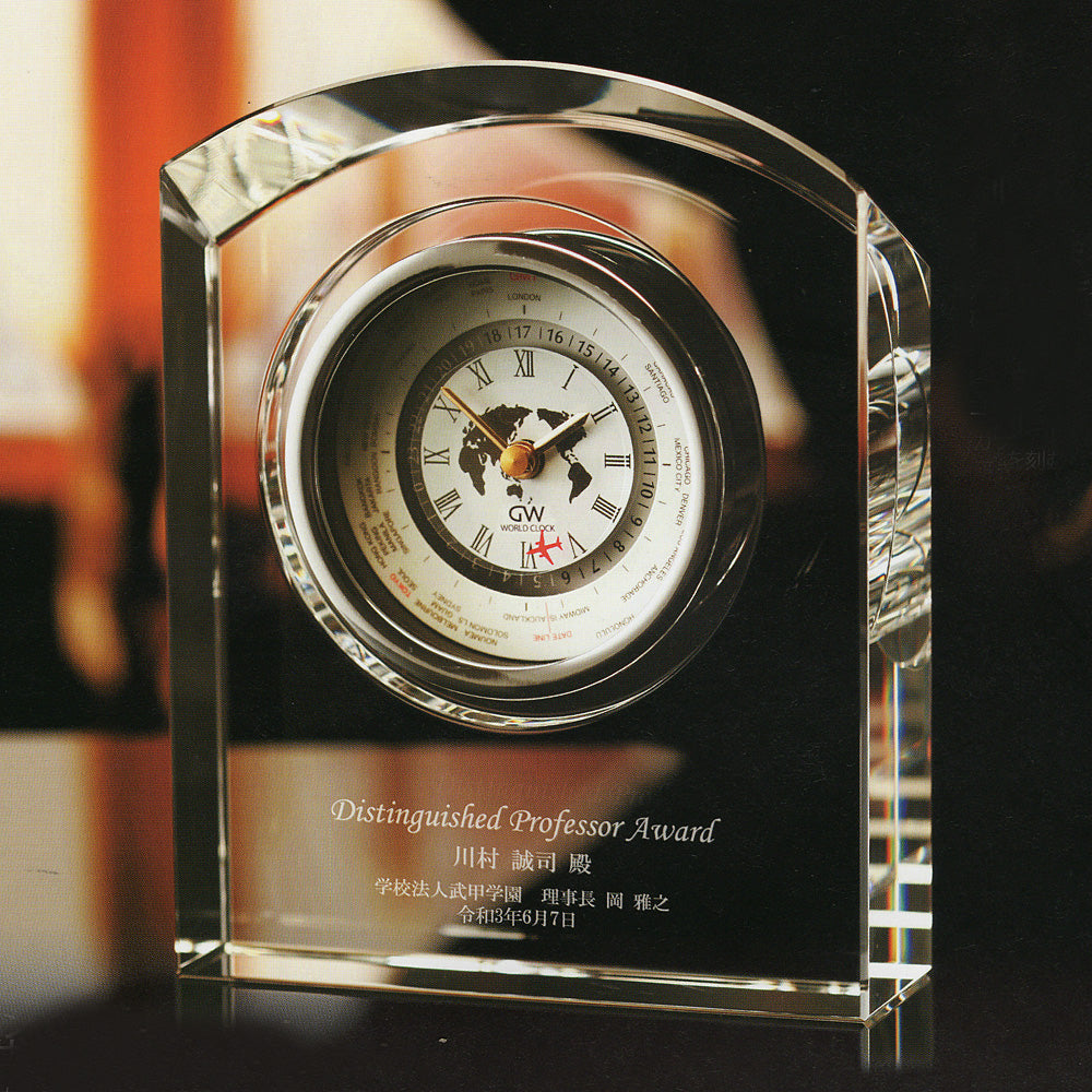 自由にメッセージを刻める、名入れクリスタルクロック。