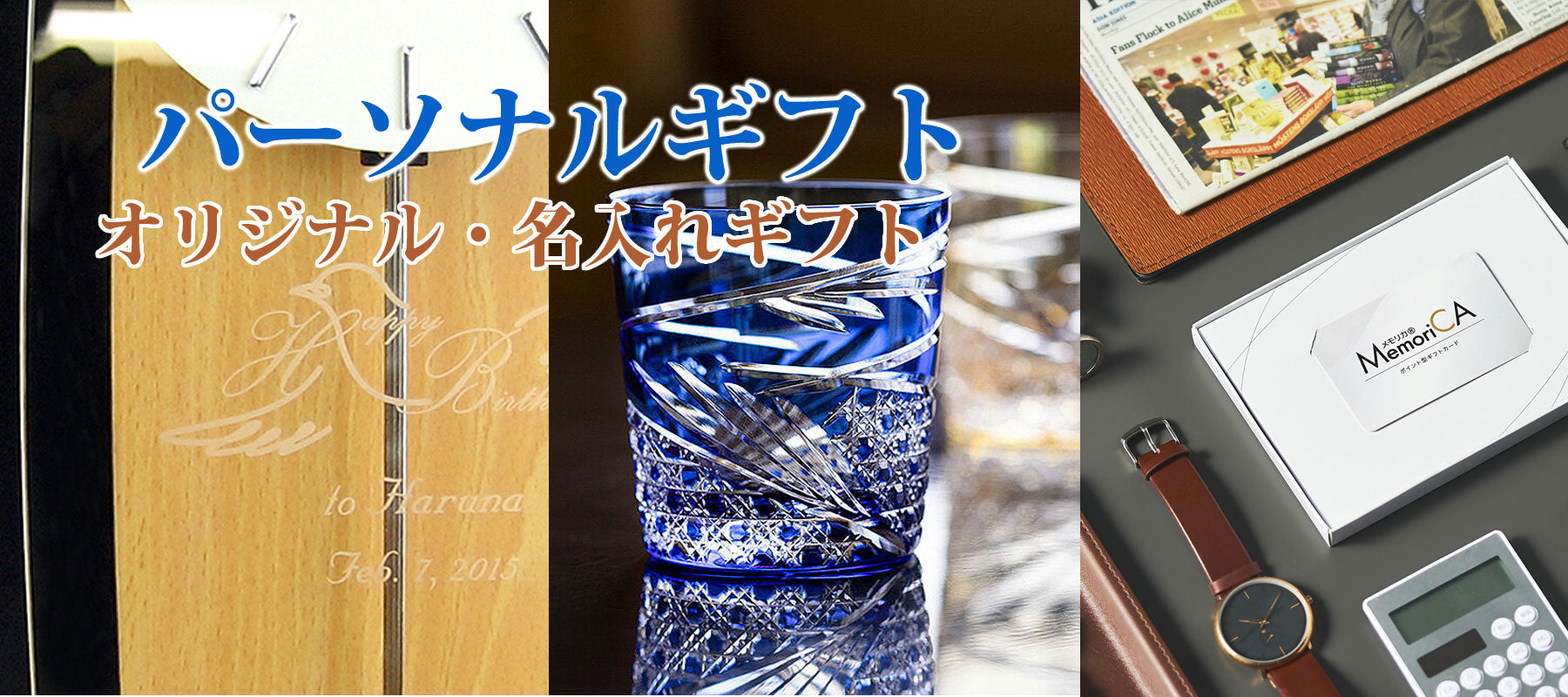 会社のコーポレートギフトからパーソナルギフトまで、贈り物の定番の名入れ時計やグラス、結婚式の引出物やあらゆる記念日の贈り物に最適なカタログギフト、世界に一つだけのオリジナルの名入れギフトなど、各種取り扱っていますので贈り物にお困りの際はお気軽にご相談ください。