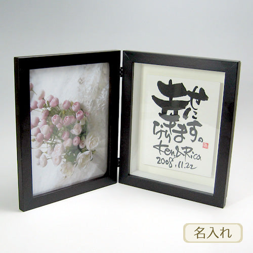 お世話になったご両親などへ、書き文字の感謝状。写真用額付きのダブルフレーム。