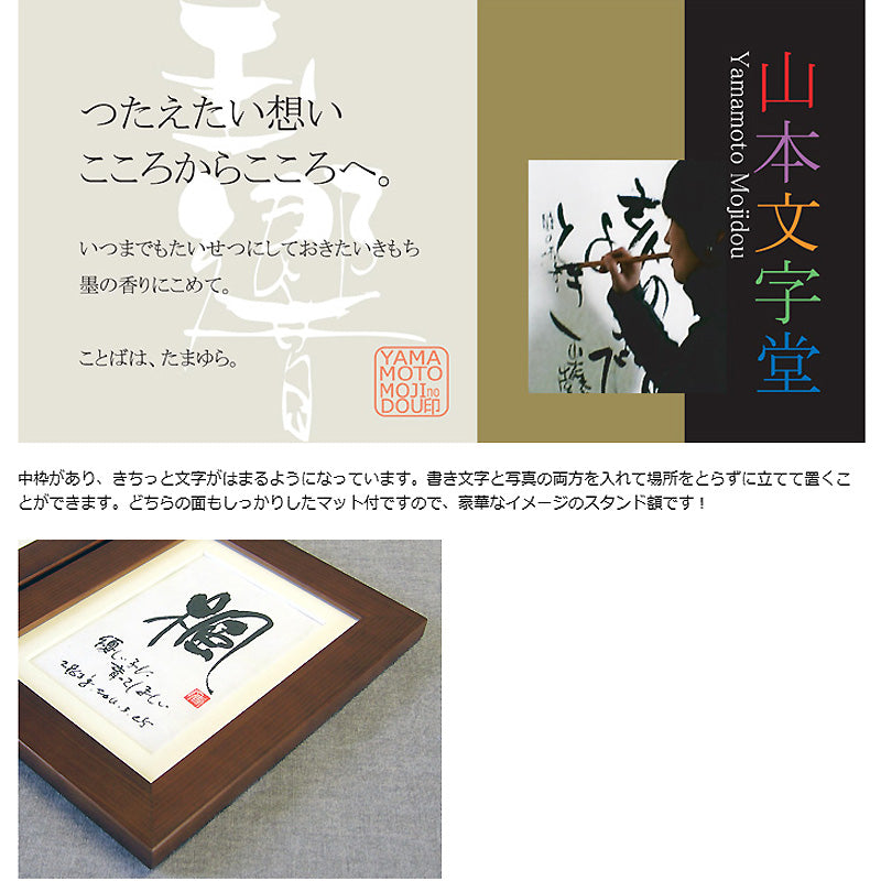 書き文字と写真をいっしょに飾れる、L判サイズの記念額