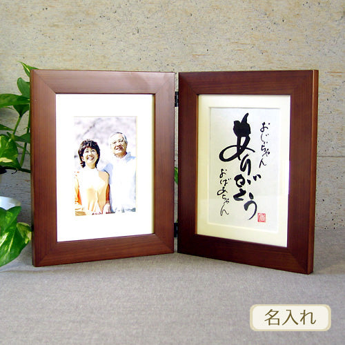 書き文字の記念額 / 写真枠付ミニダブル ( ブラウン )