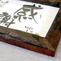 グラフィックデザインの為の書き文字をコンセプトに東京で活躍中のデザイナー「山本文字堂」による書き文字の記念額。フレームに自然の風合いを残した上質な自然のままの桐材を使用、この商品は側面のみ直線に揃えたタイプです。