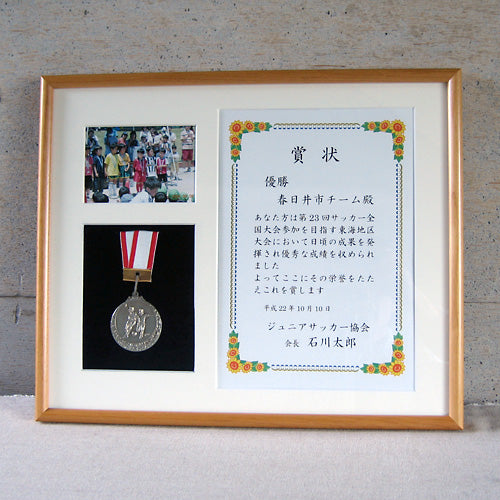 お子様などの受賞記念にお勧め!メダル・写真も収められる賞状額