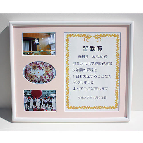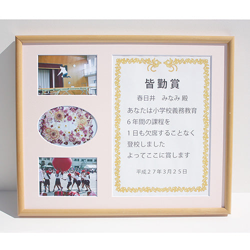 お子様などの受賞記念にお勧め!3枚まで写真が収められる賞状額