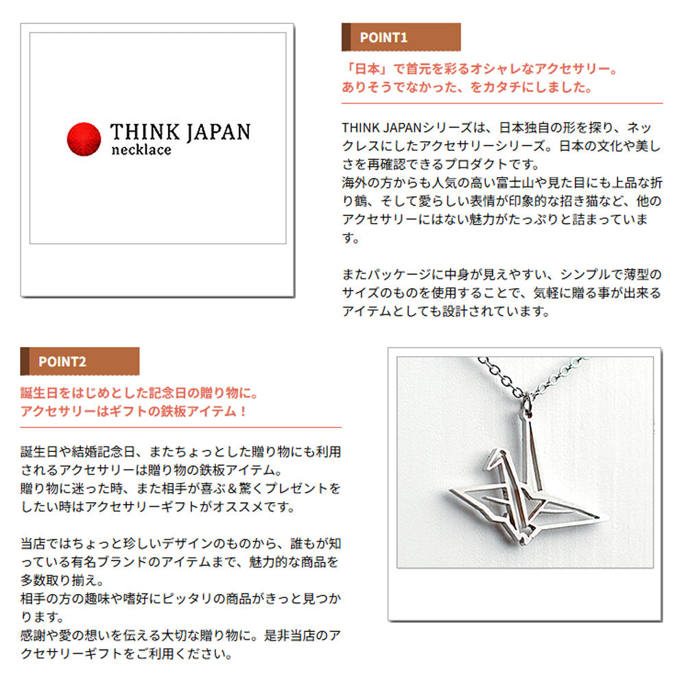 日本独自の形を探りネックレスにした、「THINK JAPAN」シリーズは、日本の文化や美しさを再確認できるプロダクトです。