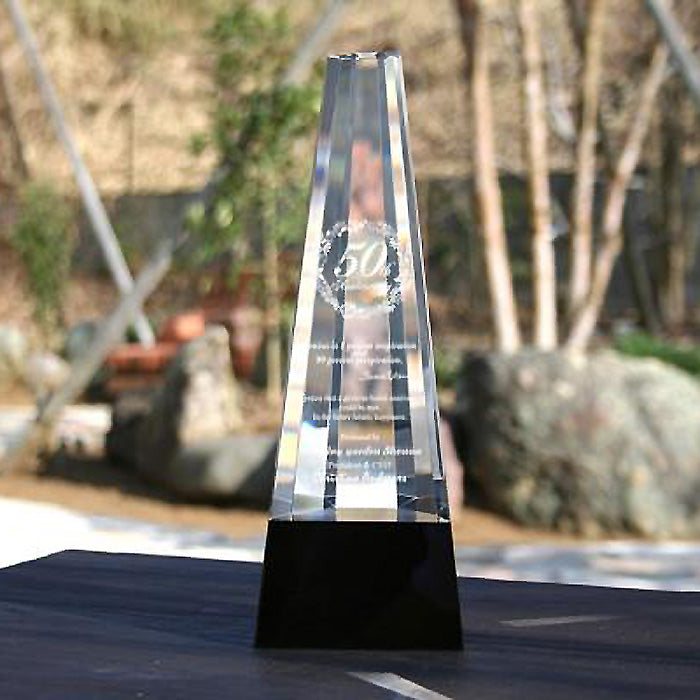名入れ クリスタル トロフィー 2Dインサイドレーザー加工 | ヘキサゴンブラックベース