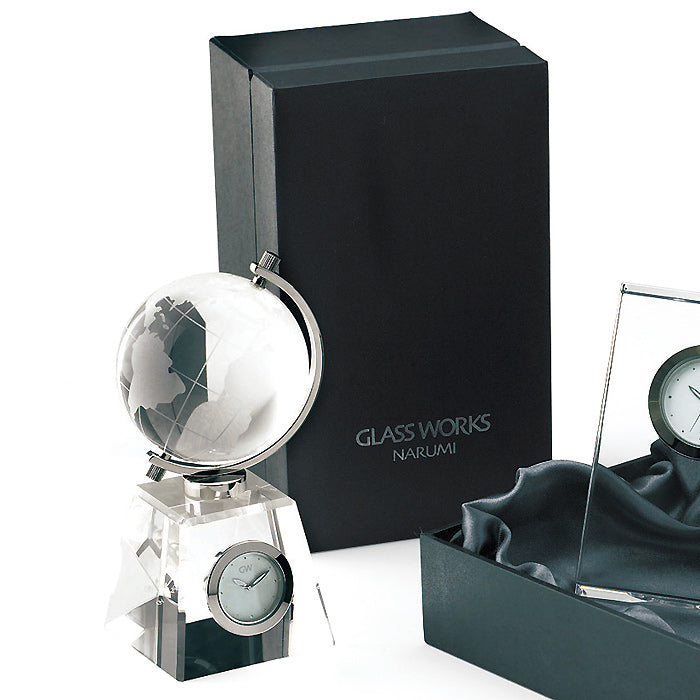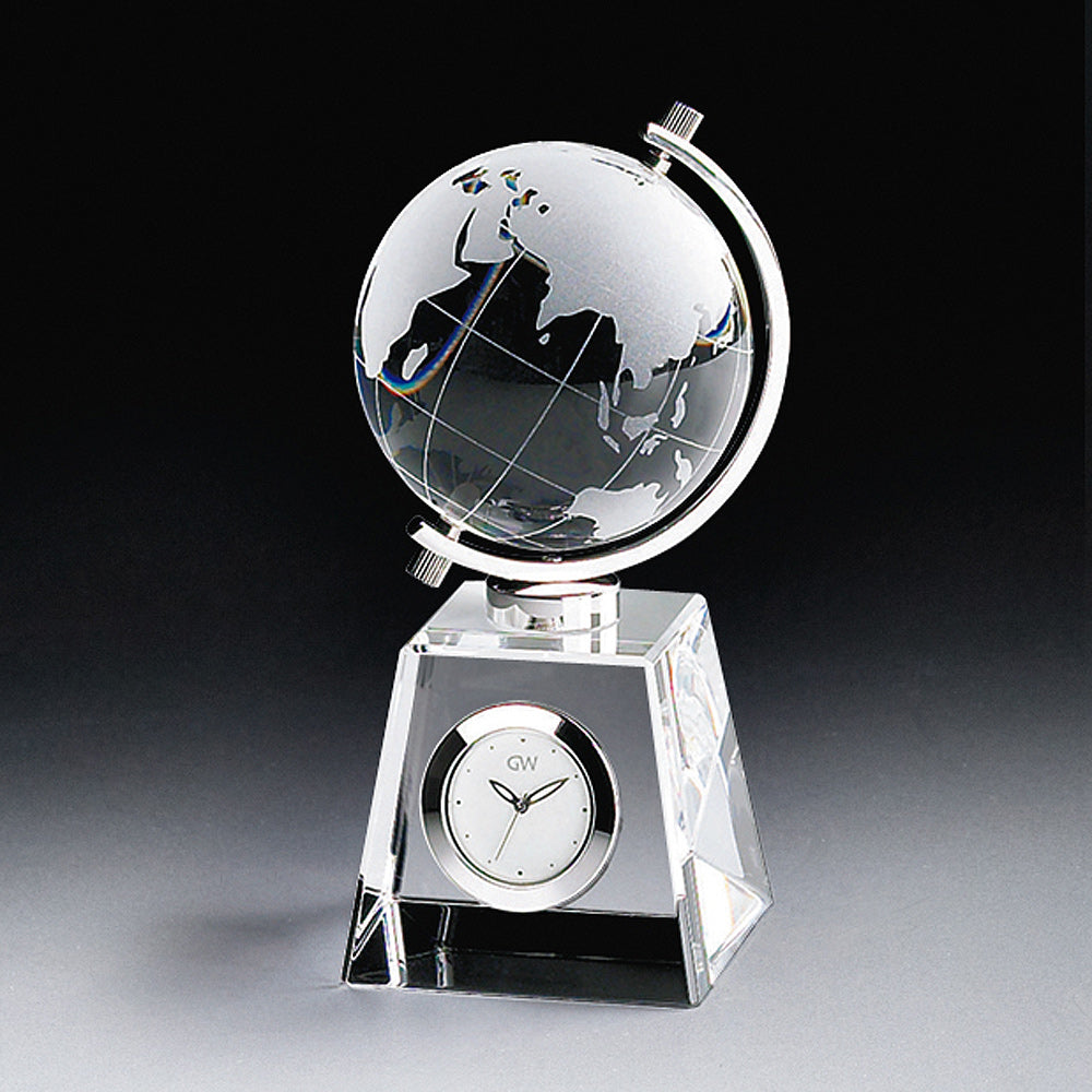 地球儀モチーフのグローバルなガラスクロック、記念品として!