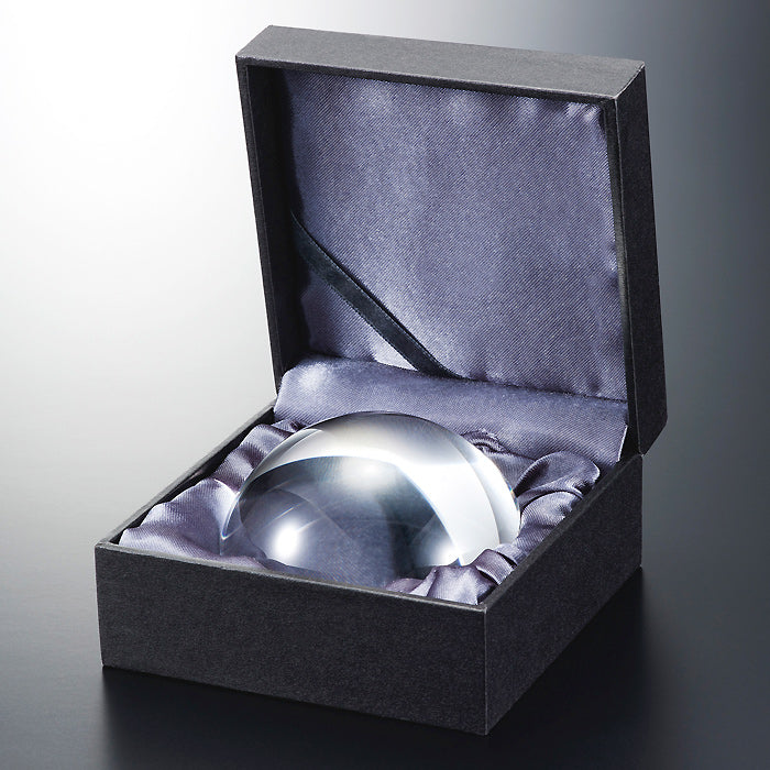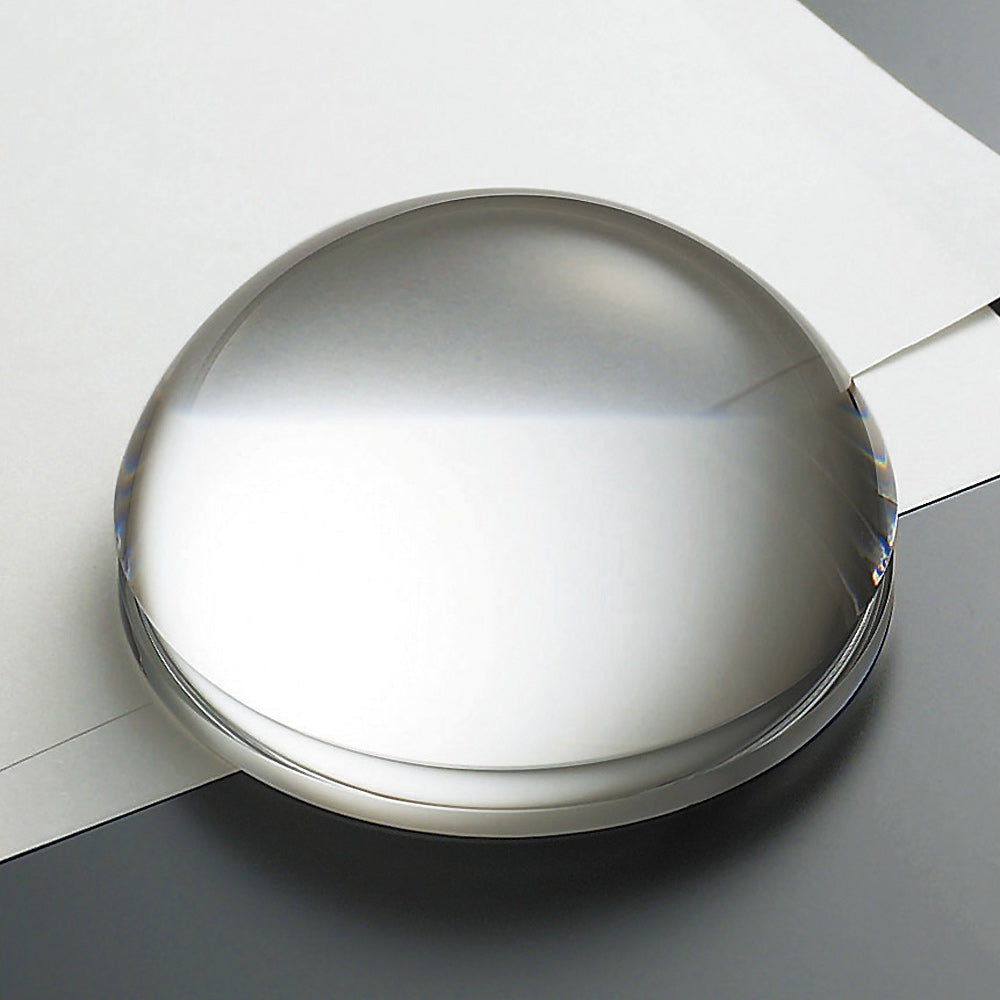 オプティカル(光学)ガラスならではの、ルーペ機能を持つペーパウェイト。デスクトップで活躍する実用型です。半円形のクリアーなフォルムはインテリアとしても気品を生み出す逸品です。