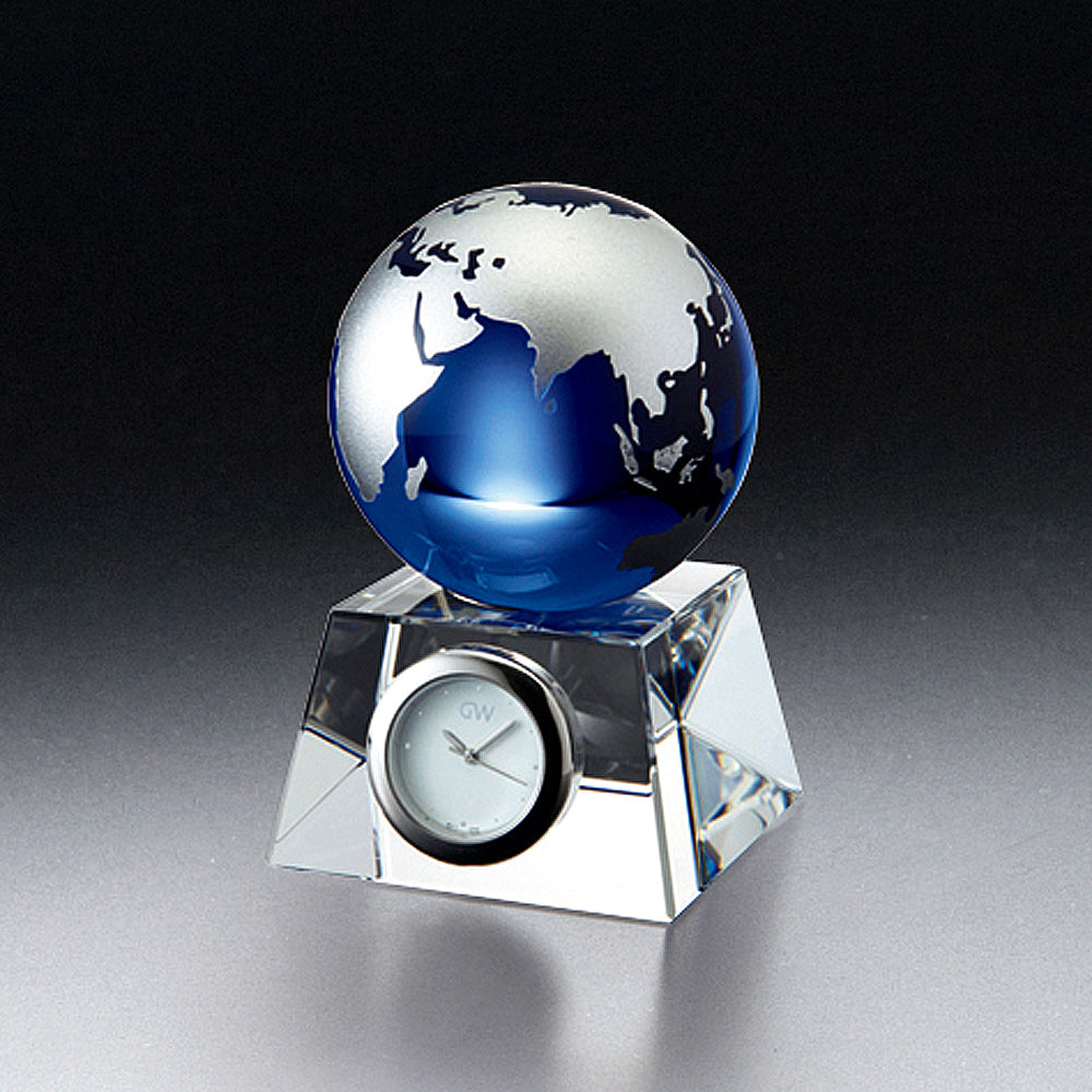 「いつまでも美しい地球を…」をテーマにして作られた透明感のあるデスククロック。時計としてはもちろん、インテリアとしても使える抜群のデザイン性が特徴です。