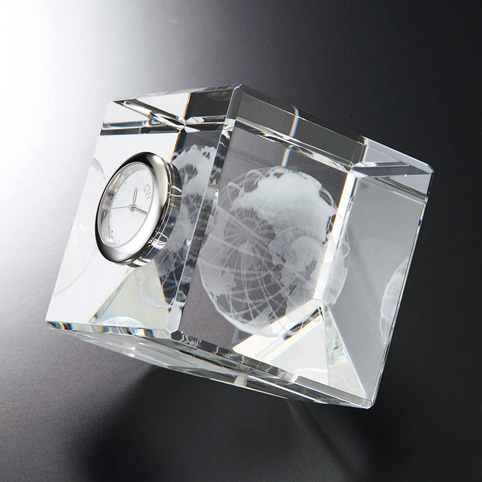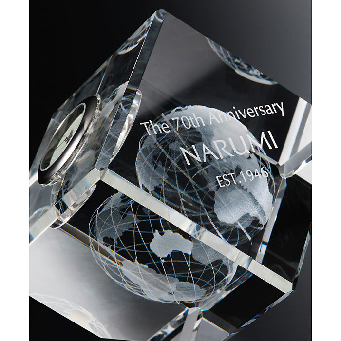 グラスワークス ナルミ | 3Dアース キューブクロック | 名入れ メッセージ 名前入り