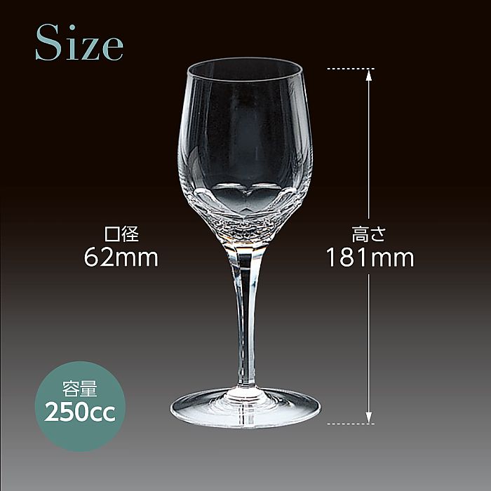 透明感のあるボディとスラッとした美しいフォルムが特徴のワイングラスです。