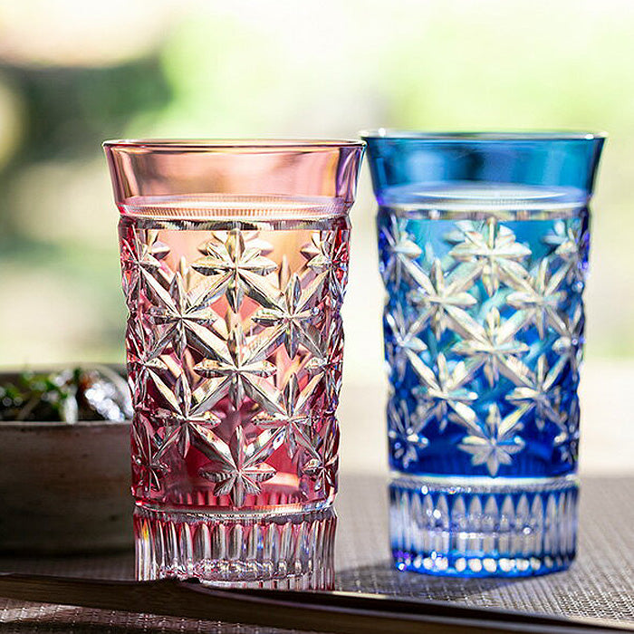 カガミクリスタルの江戸切子ペアスリムグラス、ビールグラスとしても!