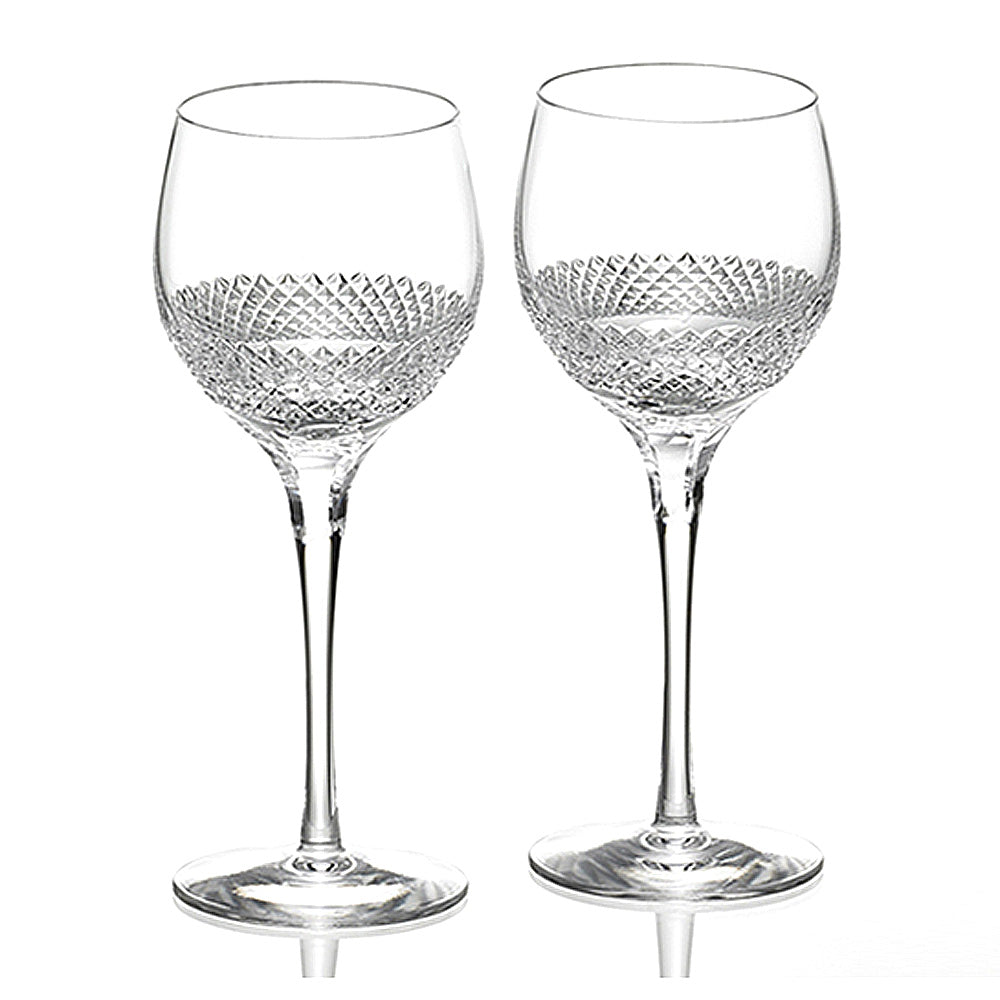 KAGAMIクリスタル初めての透明なクリスタルガラスの江戸切子ペアワイングラス。和装の着物からイメージした「帯」のデザインを、江戸切子によって表現しています。 ワインを美しくみせる、丸みを帯びた形状も特徴的。