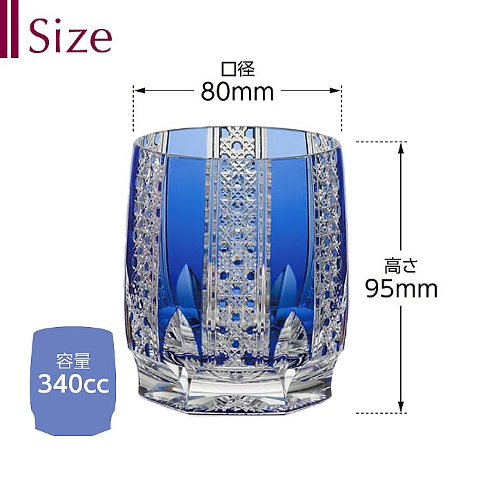 鮮やかな青と切子模様が特徴のカガミクリスタルロックグラス