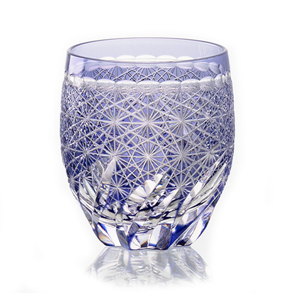 伝統工芸士篠崎英明氏の技術が光る、優雅な紫のロックグラス