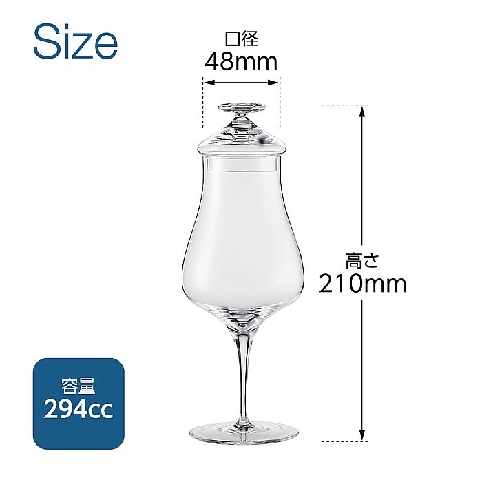 ボウルから口元へストレートに伸びるラインは、職人の手で極限まで薄く成形され、円熟したアルコールと芳醇な香りを澱みなく口元まで運び、付属の蓋はバラバラに立ち上る香りを1つの流れへと凝縮し、ウィスキーの個性を際立たせてくれます。