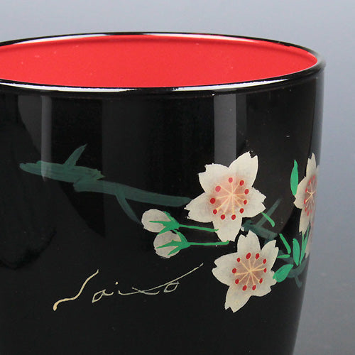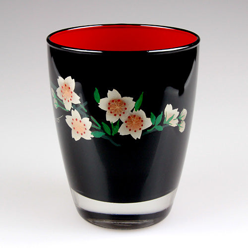 会津塗 / ガラス漆グラスさくら ( 黒 / 蒔絵 / 斉藤恒緒 )
