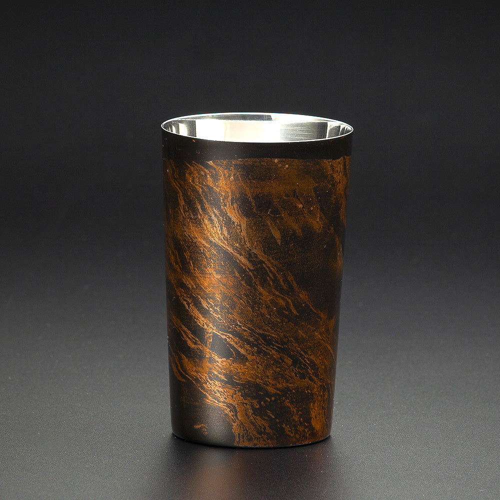 独自の「漆流し」の手法で金粉をちりばめ、きらめく流水のような模様を再現しています。大きめの氷も入る安定感のあるサイズで、天然素材である漆を使った器には愛用しながら育てる楽しさがあります。(二重構造で保冷性有り)