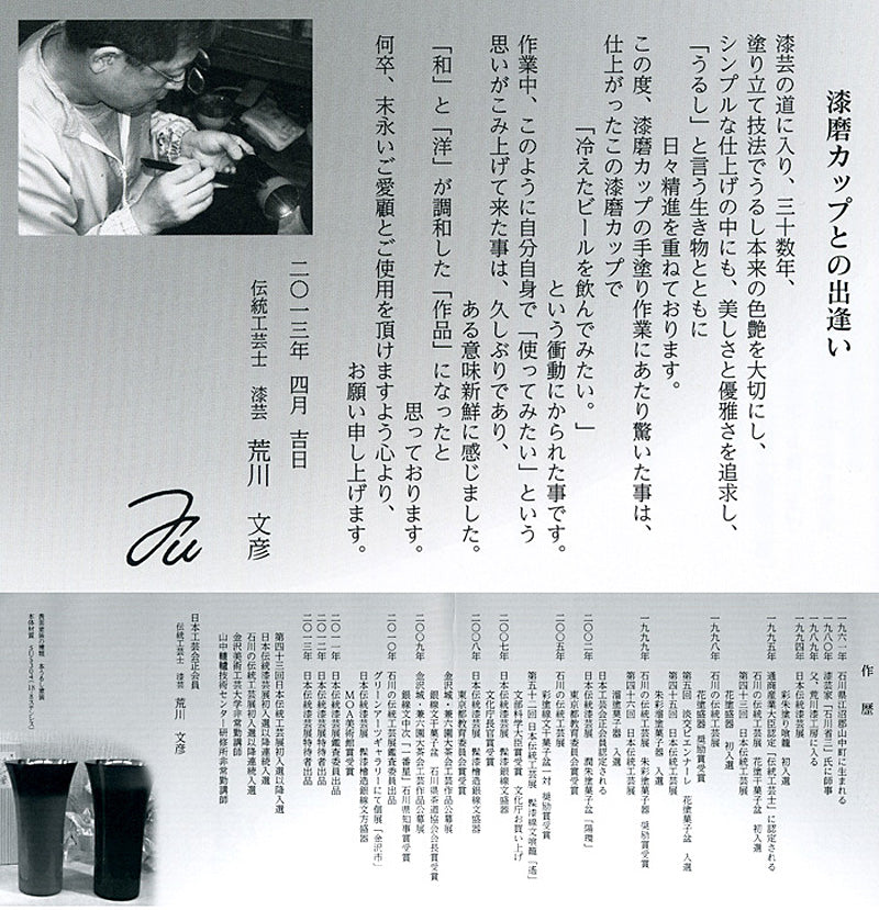 匠の技のコラボ 漆磨 シーマ | カップ シングルL 伝統工芸士 荒川文彦作 | 黒彩 | ネーム入