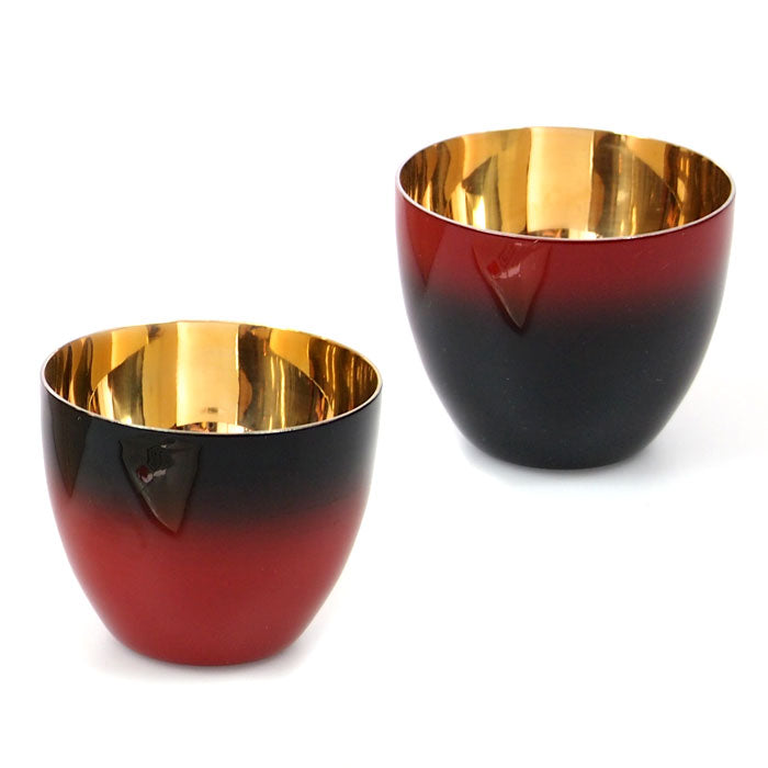 匠の技のコラボ 漆磨 シーマ | カップ ぐい呑みダブル 伝統工芸士作 | 内金メッキ 赤彩 黒彩 ペア