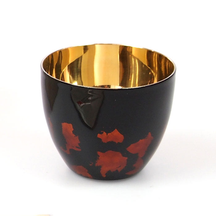 匠の技のコラボ 漆磨 シーマ | カップ ぐい呑みダブル 内金メッキ 黒 金箔華切り回し 伝統工芸士作