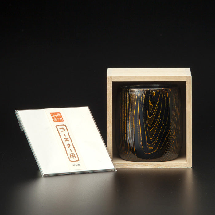 - サイズ・重量:直径7.4cm×高さ8.5cm 容量約250ml 約145g 和紙コースター:9cm角×10枚 箱:幅9.7cm×奥行9.7cm×高さ10.6cm