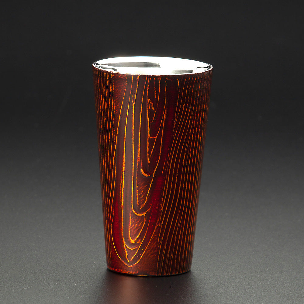 職人が手作業で描き出した模様は、漆の色合いと細やかな塗りの技法によって、自然の中で年月を重ねた古木の風合いを再現しています。どんな飲み物にも使い易いサイズで口当たりもやわらかです。(二重構造で保冷性有り)