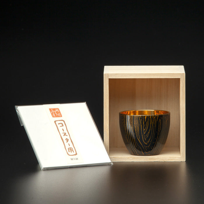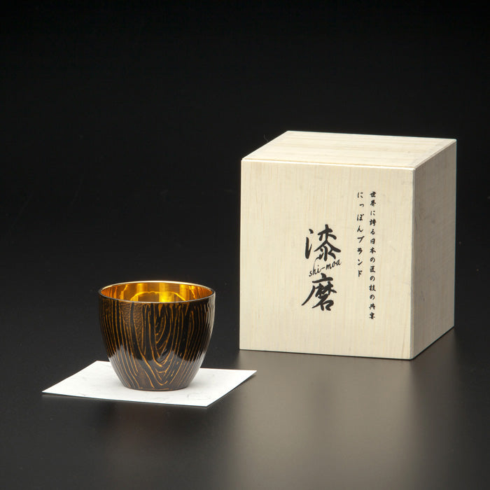 職人が手作業で描き出した模様は、漆の色合いと細やかな塗りの技法によって、自然の中で年月を重ねた古木の風合いを再現しています。内金メッキを施したとても華やかな逸品です。(二重構造で保冷性有り)