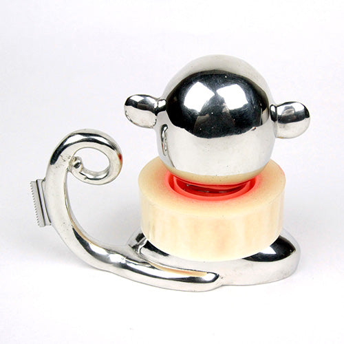 まるで甘いワナにかかって縄に縛られてしまった…そんなお茶目(?)な姿を連想させるサルのデザインが特徴のテープカッター・モンキーは、実用性とデザイン性を兼ね備えたクオリティの高さが魅力の一品。
