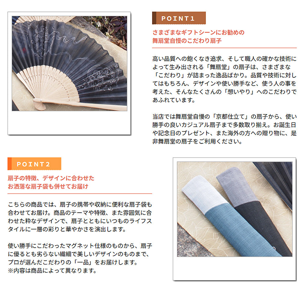 その他携帯・収納に便利なお洒落な扇子袋も併せてお届け。普段使いにはもちろん、贈り物にもお勧めです。