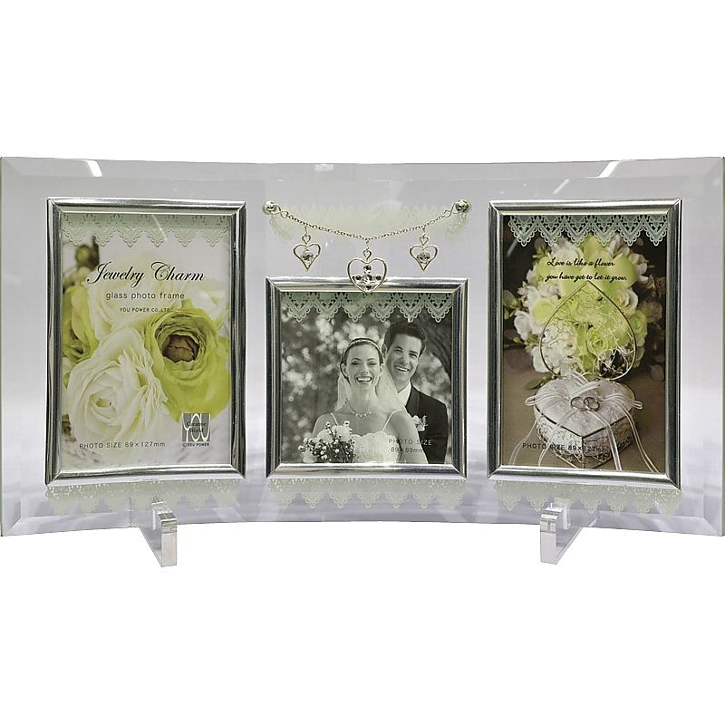 ハート型のシルバーチャームが揺れて華やかなフォトフレーム