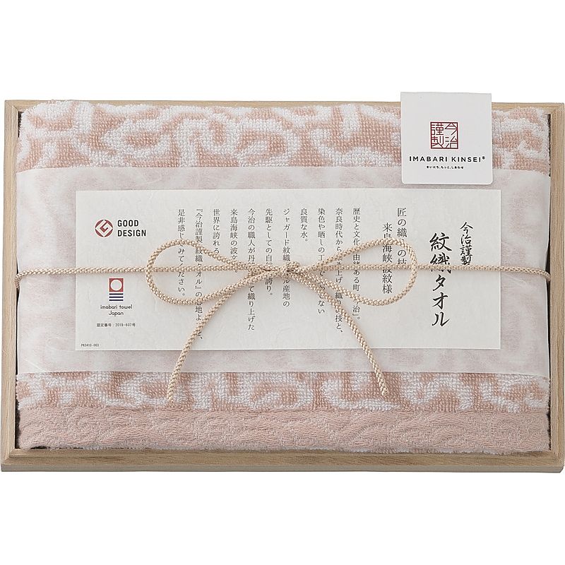 ( 今治謹製 / 紋織タオル ) フェイスタオル(木箱入) ( ピンク )