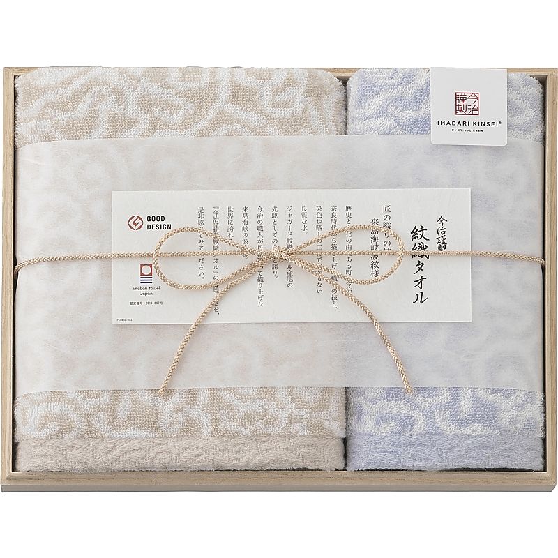 2004年に販売をスタートした「今治謹製 紋織タオル」。15年間、皆さまからのご愛好を受け、累計販売数700万個を突破致しました。この度、「いちばんのタオルギフト」を目指して、紋織タオルはリニューアルを致します。より上質に、より柔らかく。もっと、特別なギフトへ。 リニューアルポイント ①新色ブルー配色追加 ②タオルのボリューム感Up③ヘムにジャガード柄を織り込んで高級感Up ④今治ブランド認定