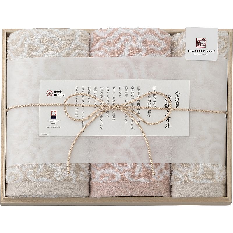( 今治謹製 / 紋織タオル ) フェイスタオル2P&ウォッシュタオル(木箱入) ( ピンク )