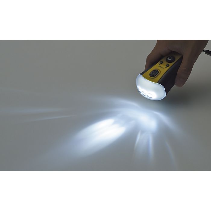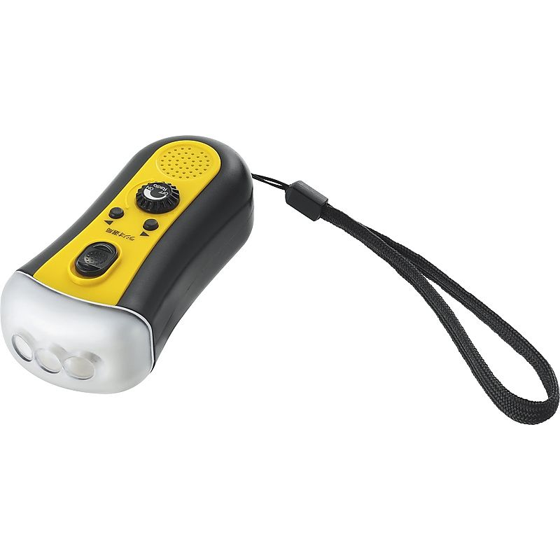 ラジオとライトがひとつになり、防災グッズとして重宝します。ハンドルを回して充電します。