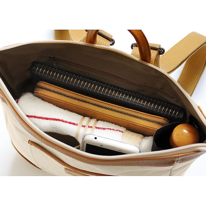 - 商品内容:サイズ/本体:33(最小25)×9×26cm、ショルダー:約43〜83cm、持ち手立ち上がり:約6.5cm 材質/本体:綿・牛革、持ち手:牛革、ショルダー:アクリル 箱入重量/0.36kg 原産国/日本 機能/日本製 補足/★内側:オープンポケット×2、ファスナーポケット×1、外側:オープンポケット×1 ★開閉:ダブルファスナー式