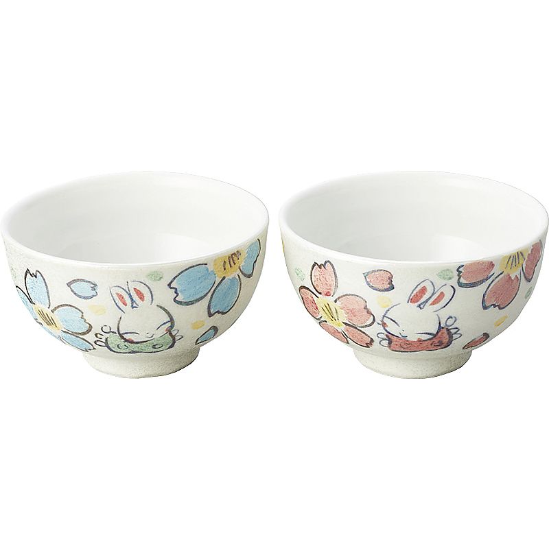 ※納期30日程度 夕立窯 パールうさぎ ペア飯碗 662-7005p