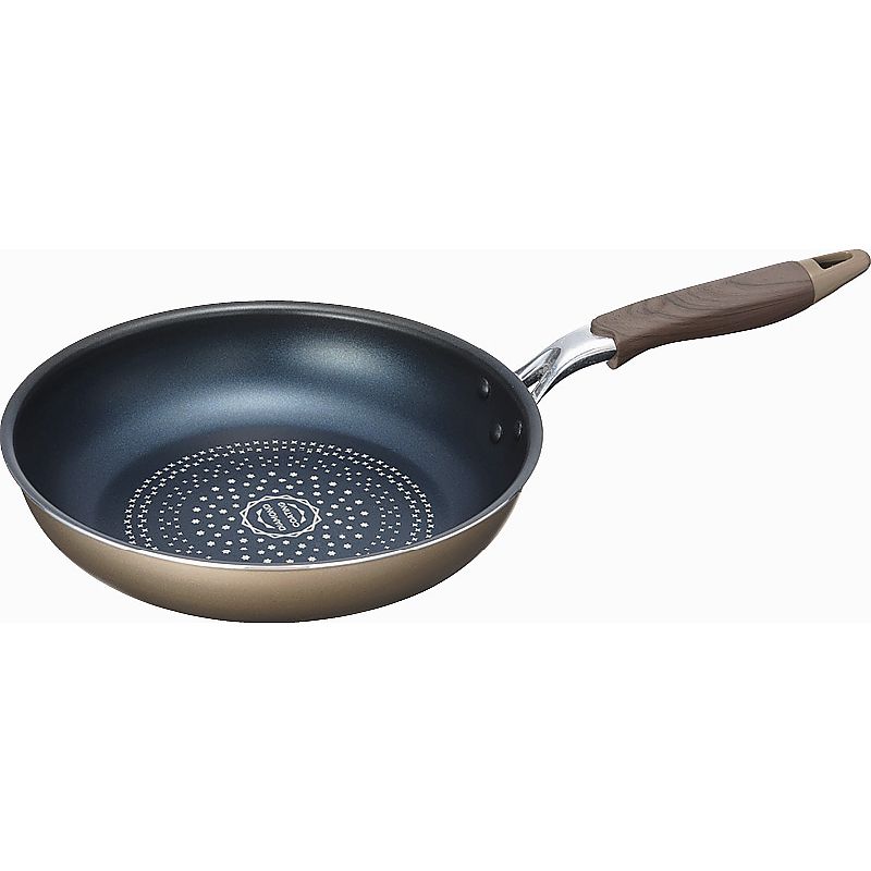 軽くて扱いやすいアルミ製。高級感のあるブラウンゴールドの外面。内面には、食材がこびりつきにくくお手入れが簡単なダイヤモンドコートを施しております。