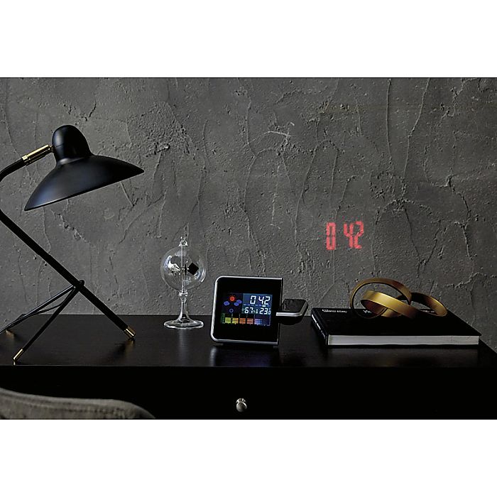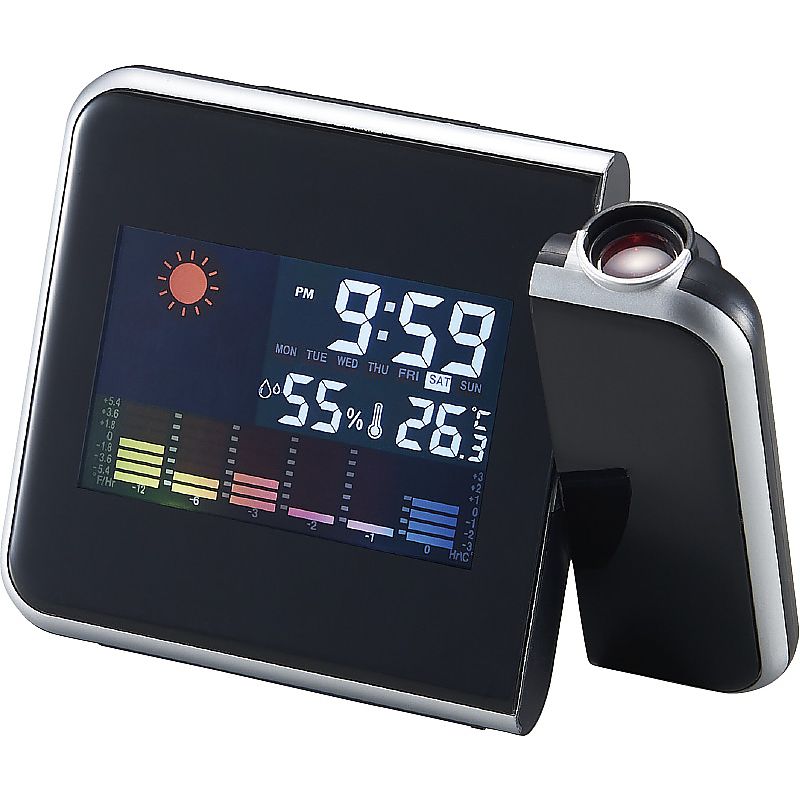 温度計、湿度計、気温変化グラフ付でウイルスや熱中症対策にも。機能:時計、アラーム、スヌーズ、カレンダー、温度計、湿度計、気温変化グラフ、天気予報、バックライト、時刻プロジェクター