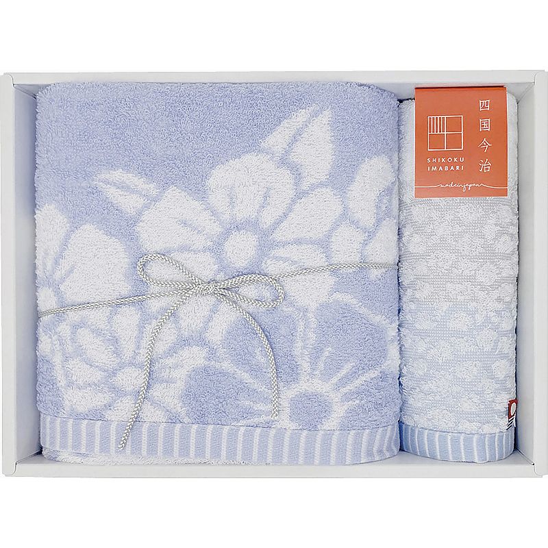 今治ギフト 華音 バスタオル&ウォッシュタオル ブルー 662-7385p