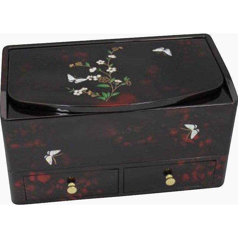 べっこう塗で仕上げています。 ふたの裏に鏡が付いています。