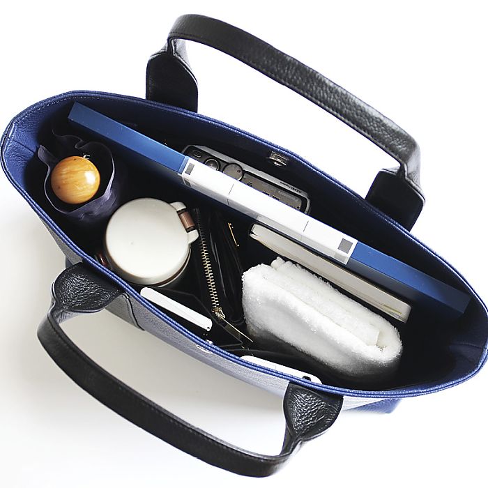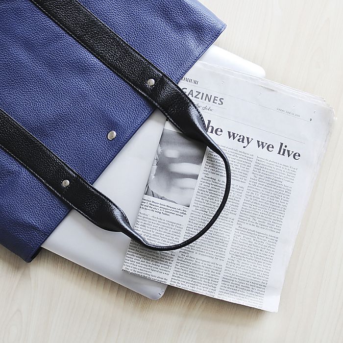 A4サイズがすっぽり入る、少し大きめのサイズのレザートートバッグ。ブルーの牛革が重厚感があり、きちんとした印象です。ベーシックなデザインだからこそ、ビジネスはもちろん、様々なシーンで活躍します。