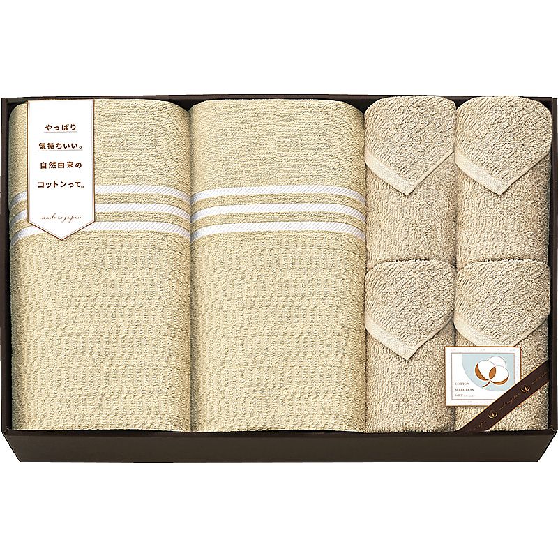 コットン セレクション ギフト 国産さらさらタオルケット2P&タオルセット(泉州産) ベージュ 662-7685p