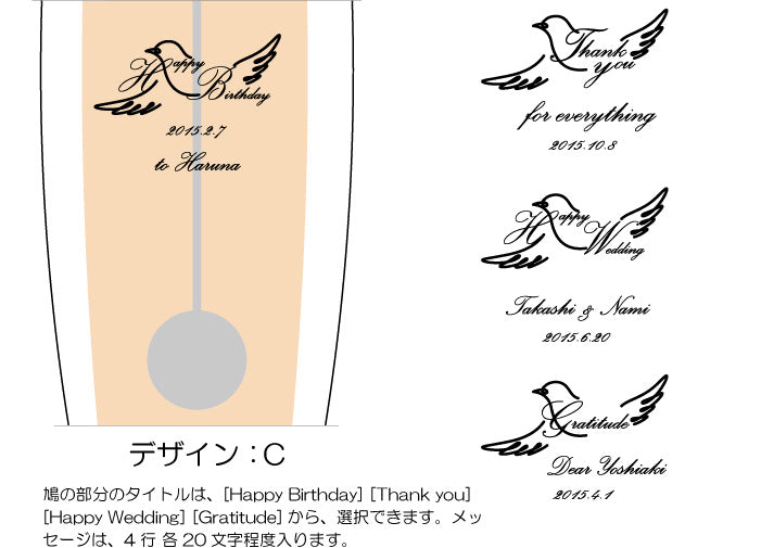 名入れできる面積が大きいですので、メッセージだけでなく、数タイプの柄付きのデザインをご用意しました。