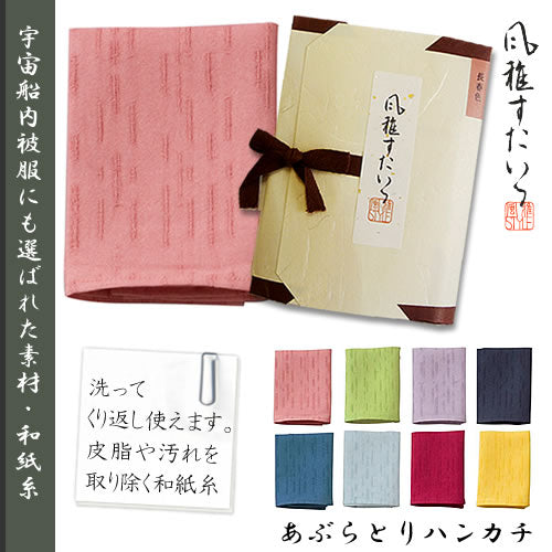 宇宙船の船内被服に使われた和紙糸使用!和の色合いが揃ったあぶらとりハンカチ