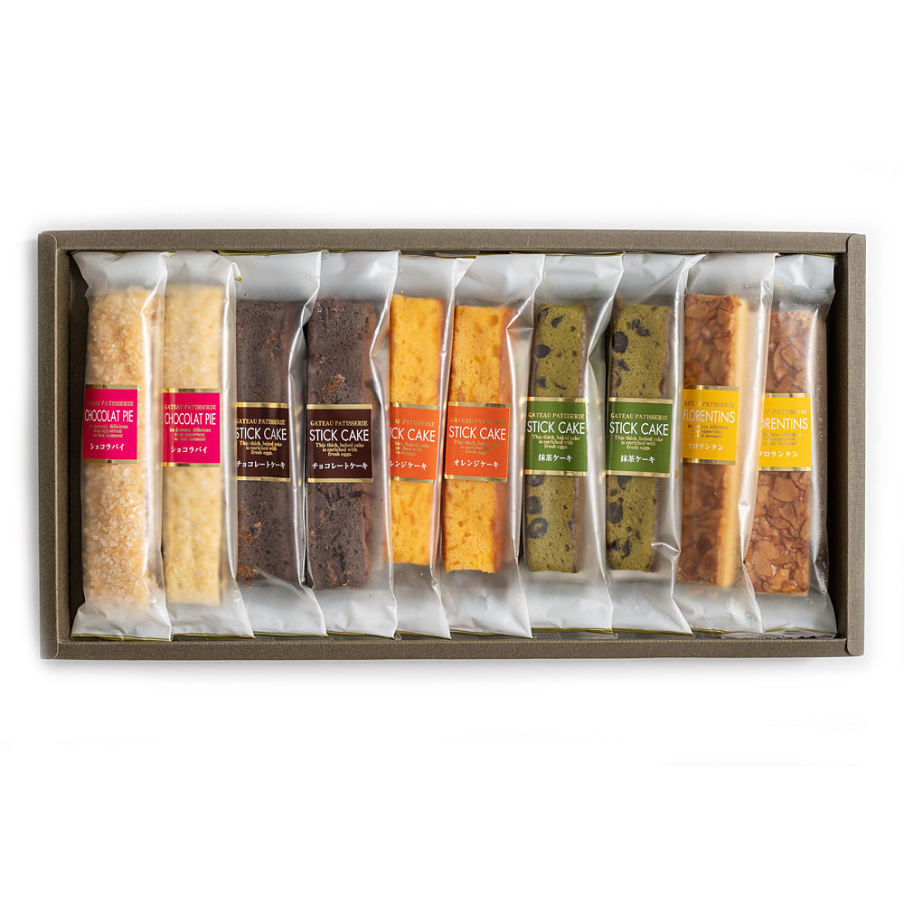 - セット内容:ショコラパイ・スティックケーキ(抹茶・オレンジ・チョコレート)・フロランタン×各2本