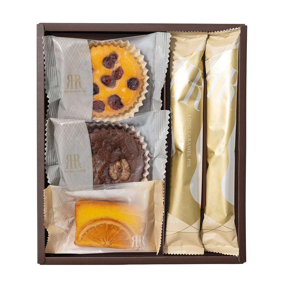 - セット内容:プチケーキ(ベリー・ショコラ&ナッツ×各1個)、オレンジケーキ×1個、ロングキャラメルパイ×2本