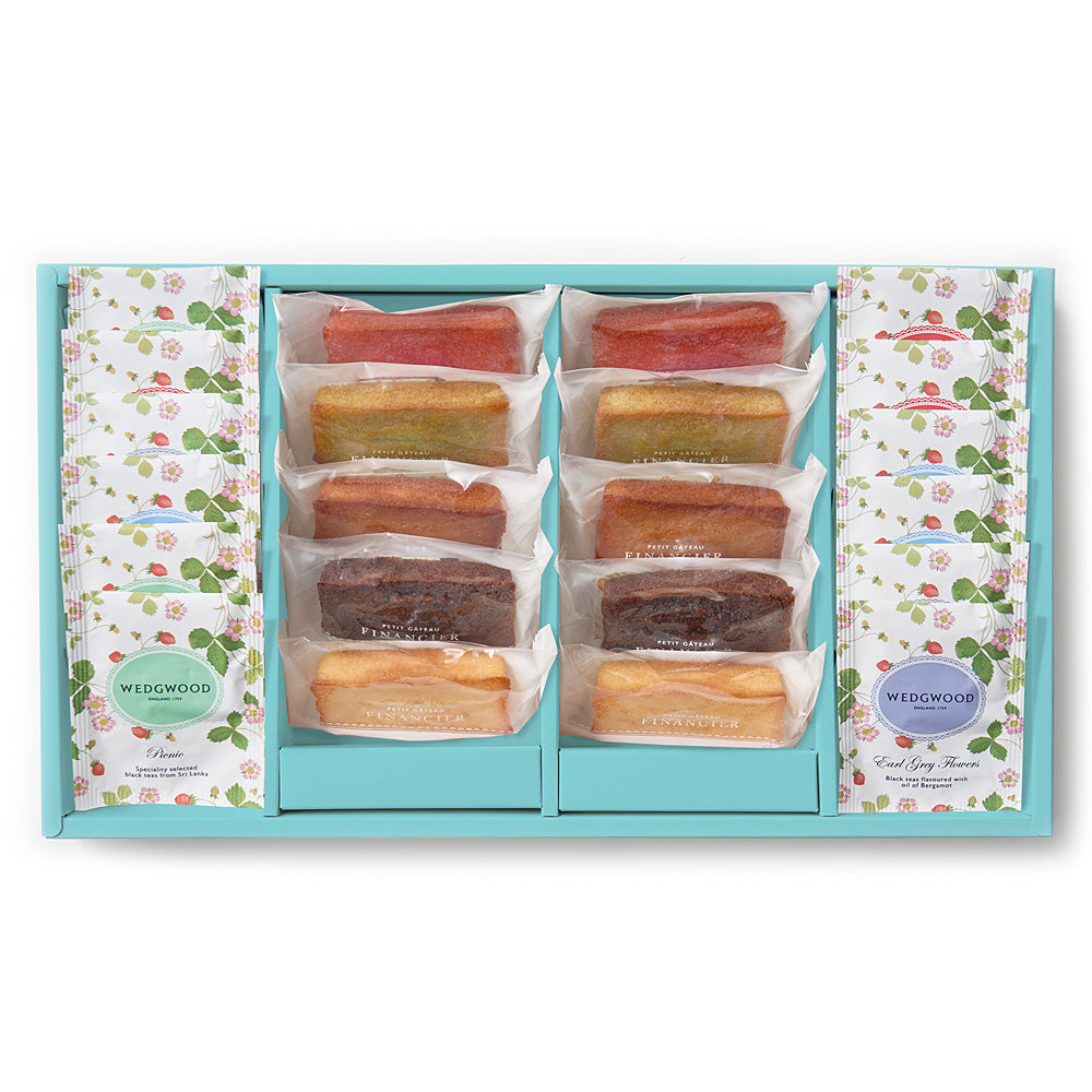 - セット内容:フィナンシェ(ストロベリー・ピスタチオ・チョコ・プレーン・イチジク×各2個)、ワイルド ストロベリーティーバッグ(ファイン ストロベリー・ピクニック・ウィークエンド モーニング・アール グレイ フラワーズ×各3袋)※フィナンシェはウェッジウッドの商品ではありません。