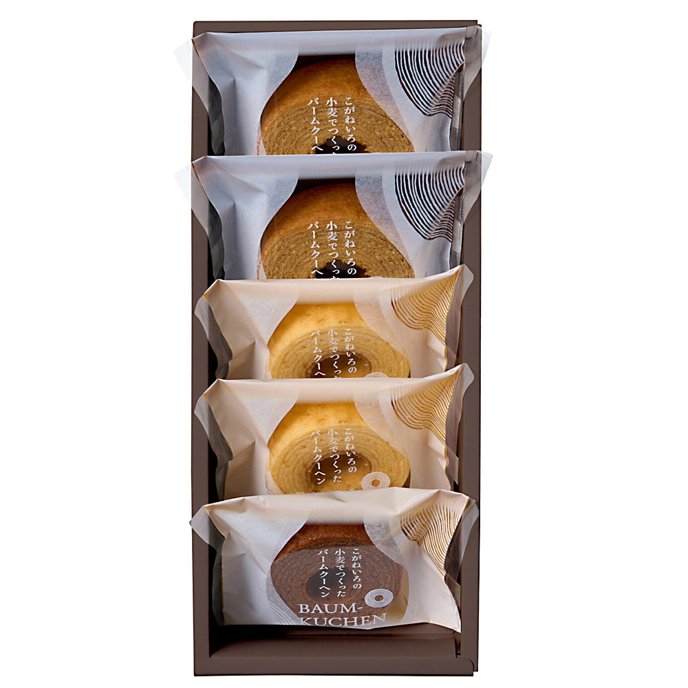 - セット内容:ふんわりバームクーヘン(ミルク・黒糖×各2個、ココア×1個)